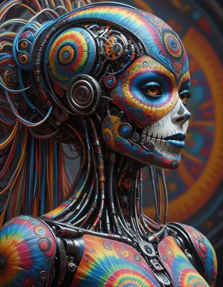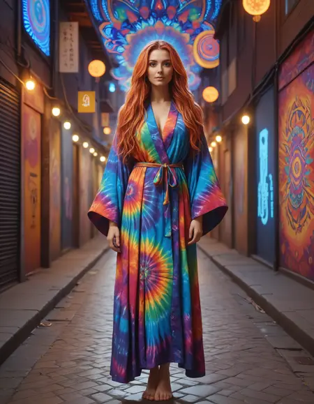 使用 EPtiedyeworld 触发,并搭配关键词如 psychedelic(迷幻)、funky( funky)、retro(复古)、multicoloured(多彩)、scifi(科幻)、caustics(光斑)等 来增强效果。尽情尝试、实验并组合不同的关键词吧,我很期待你们能创作出什么!