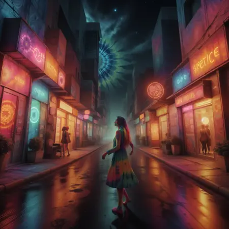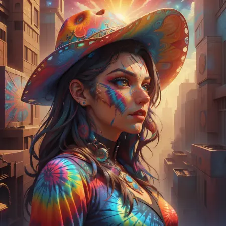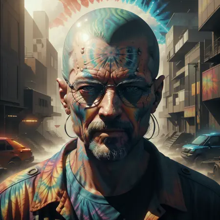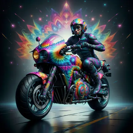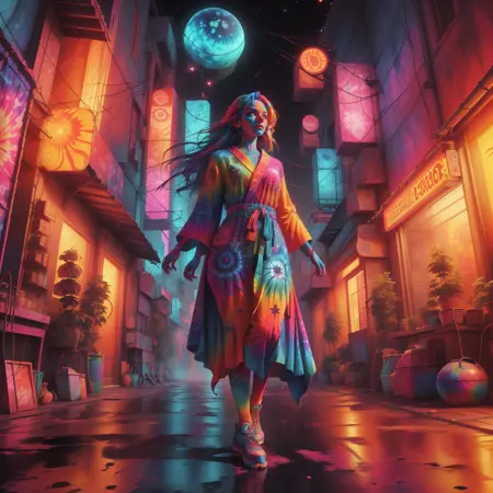 EPtiedyeworld로 트리거되며, psychedelic, funky, retro, multicoloured, scifi, caustics 등의 키워드를 사용하여 효과를 강화하세요. 자유롭게 실험하고 다양한 키워드를 결합해보세요. 여러분이 어떤 결과를 만들어낼지 기대됩니다.