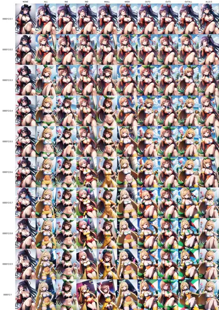 我还使用了 LoRA Block Weight 插件,上图表示出不同参数下的结果。如果不打算安装这个插件,只看“ALL”的部分即可。