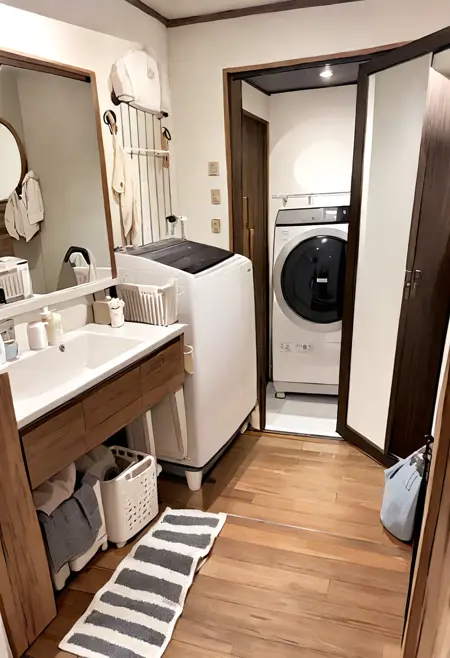 これは日本の住宅でよく見かける洗面所の風景をもしかすると描けるかもしれないLoRAです。