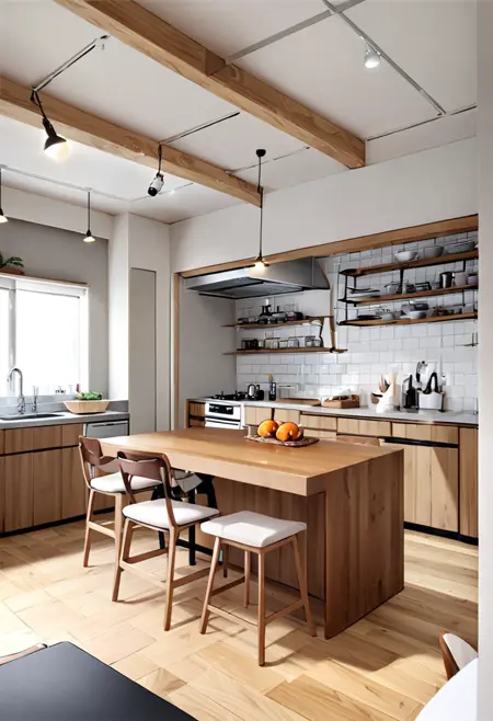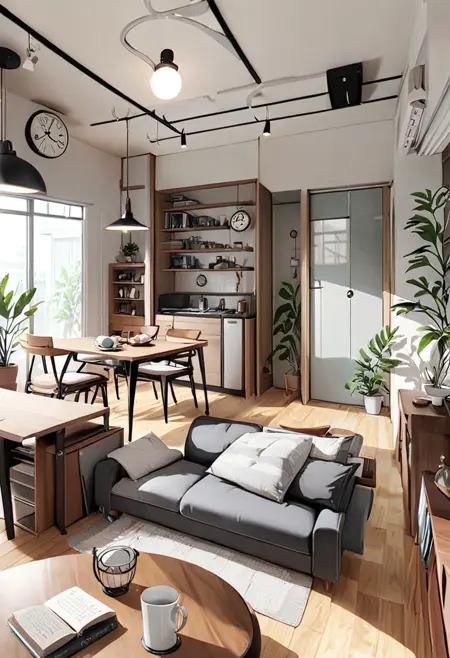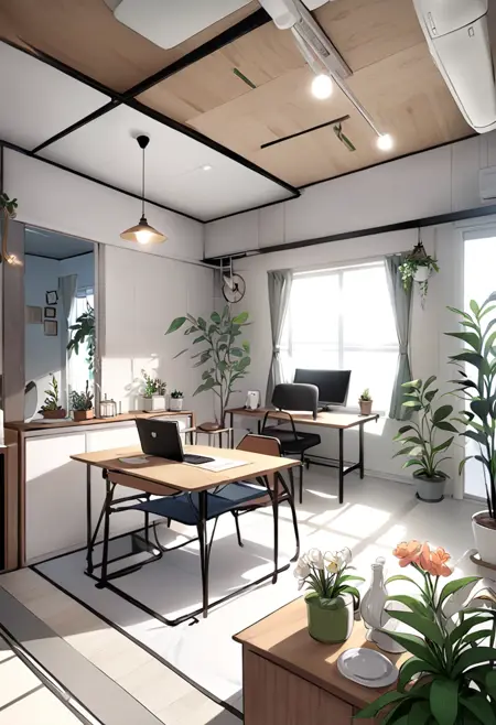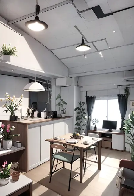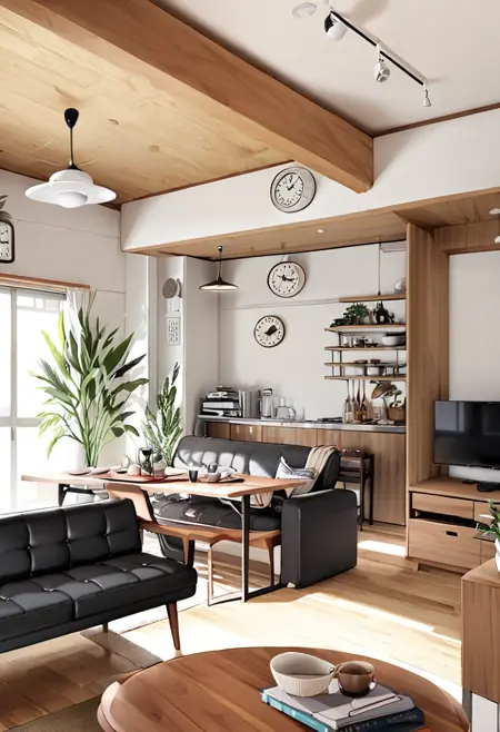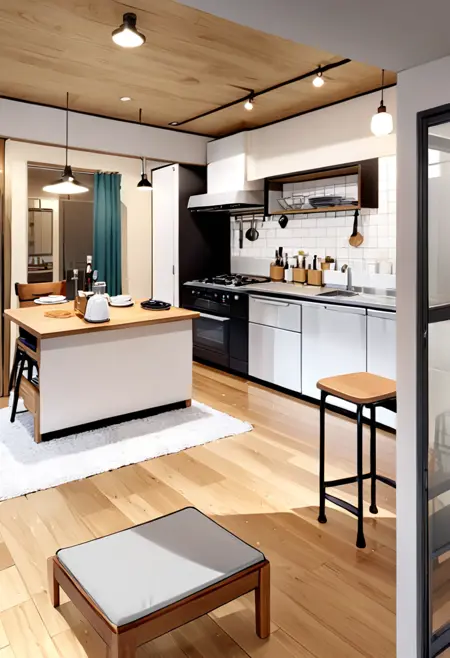 这是一个可能描绘出类似日本老旧集合住宅翻新后的LDK(客厅、餐厅和厨房)风格的略微时尚景观的LoRA。