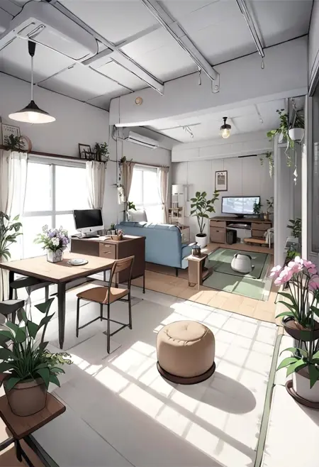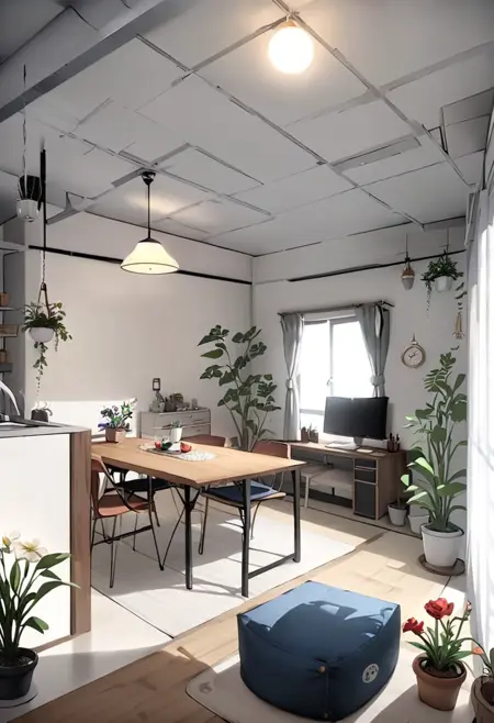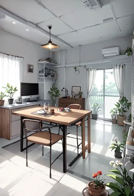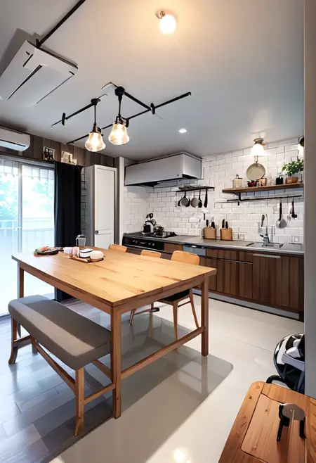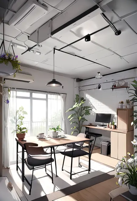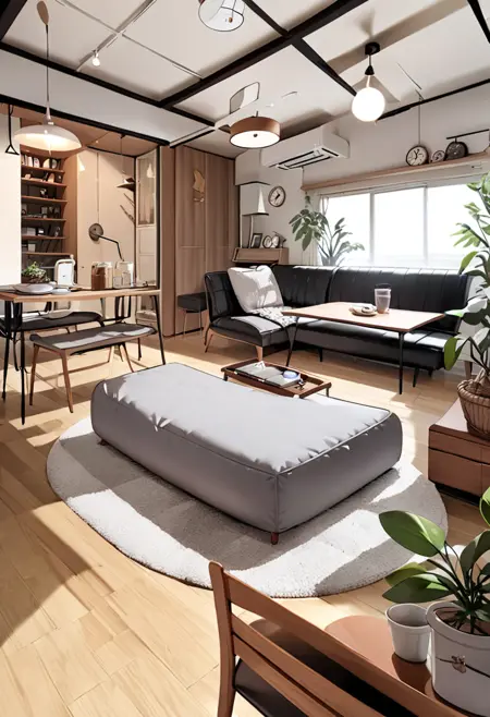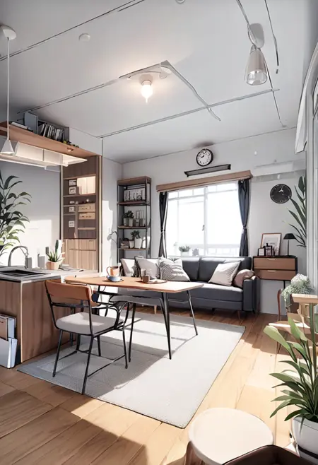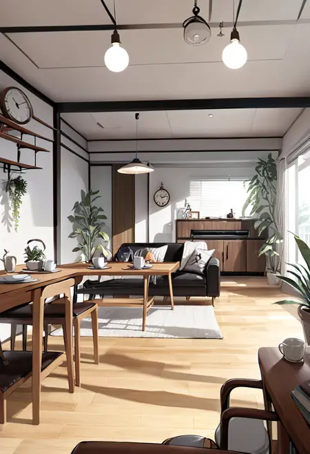 これは日本の古い集合住宅のLDK(リビング&ダイニング&キッチン)をリノベした感じのちょっとオシャレな感じの風景をもしかすると描けるかもしれないLoRAです。