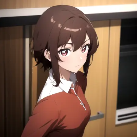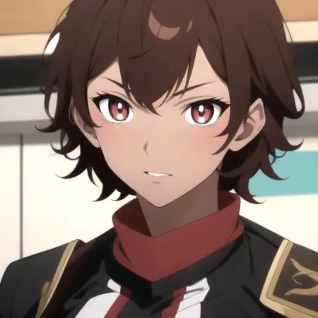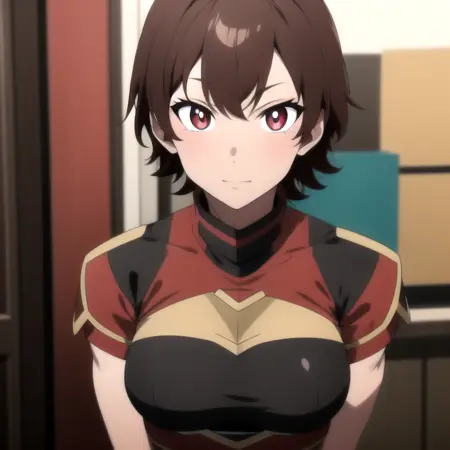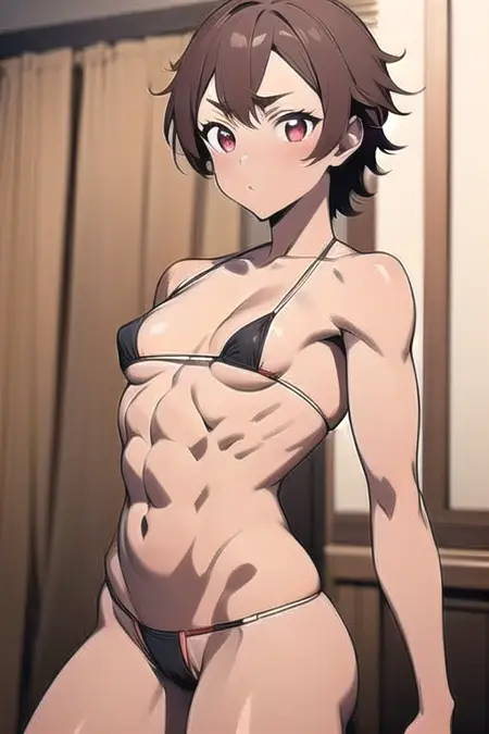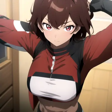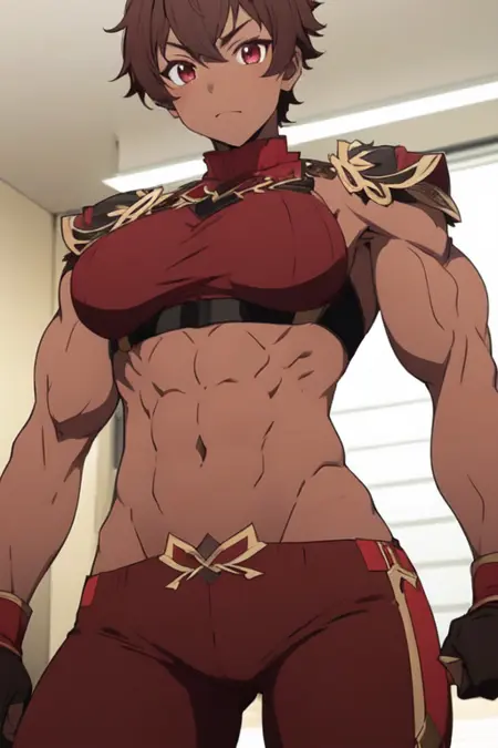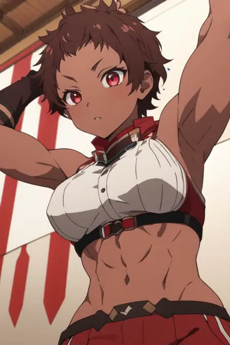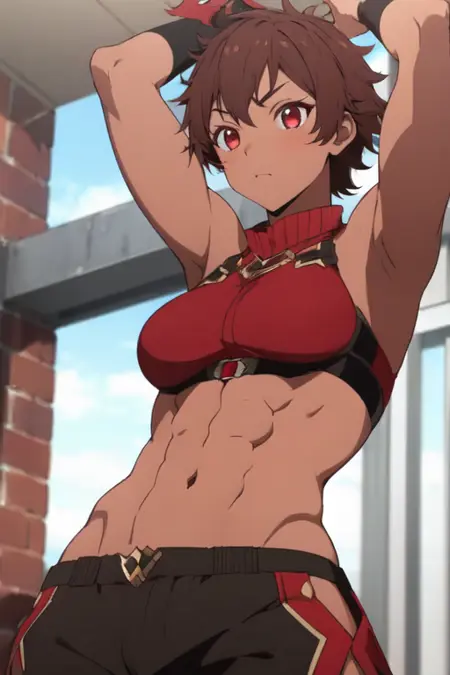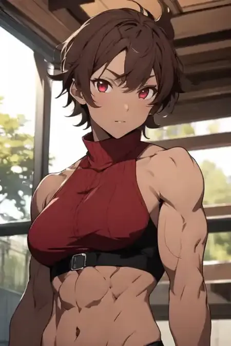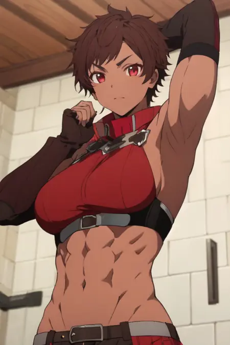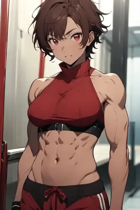 burossamu,red eyes, brown hair, abs, female