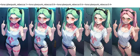 This LoRA is intended to generate images of the character Rebecca from Cyberpunk Edgerunners in a high quality aesthetic illustration style.