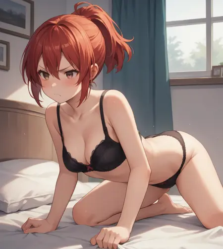 캐릭터: mitsuki, 빨간 머리, 단발머리, 갈색 눈, 짧은 머리, 중간 크기의 가슴