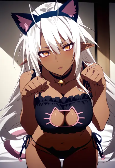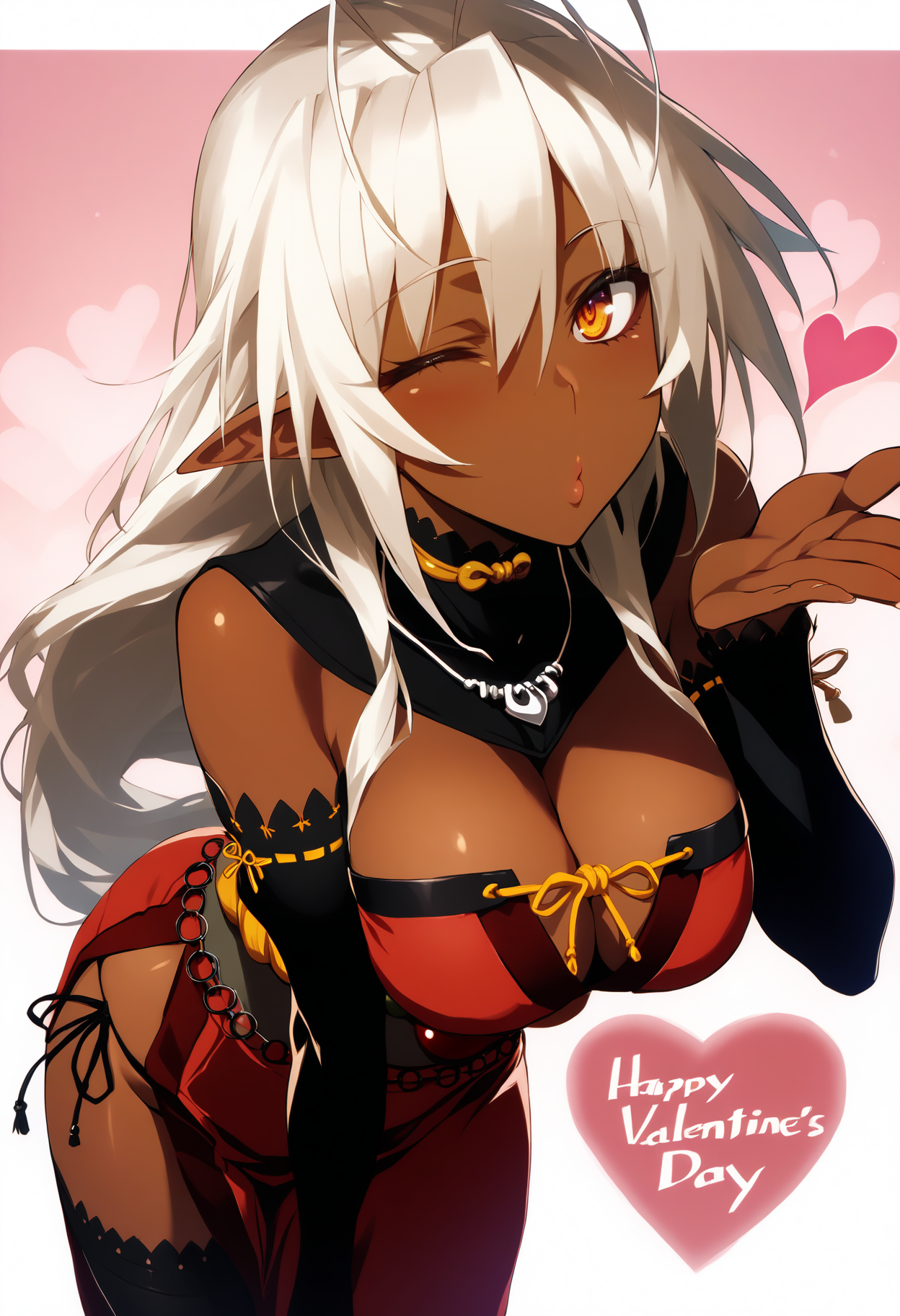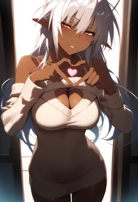 触发词:murasansei、dark elf、dark skin、white hair、long hair、antenna hair、orange eyes