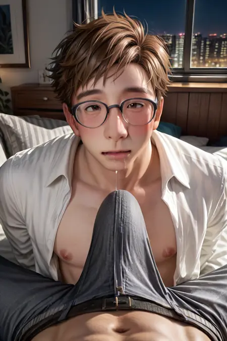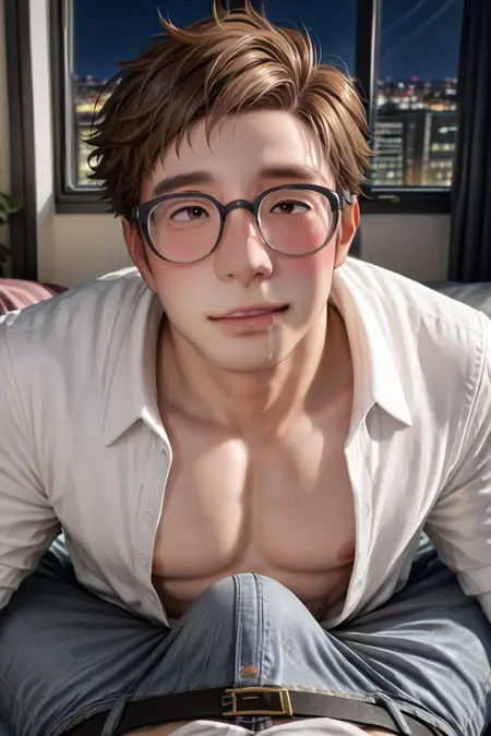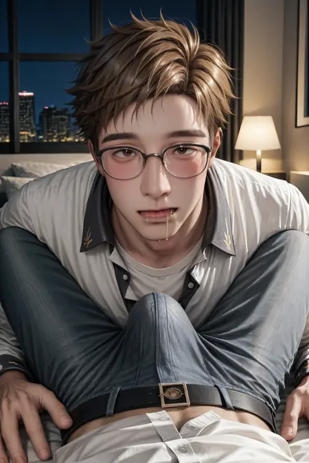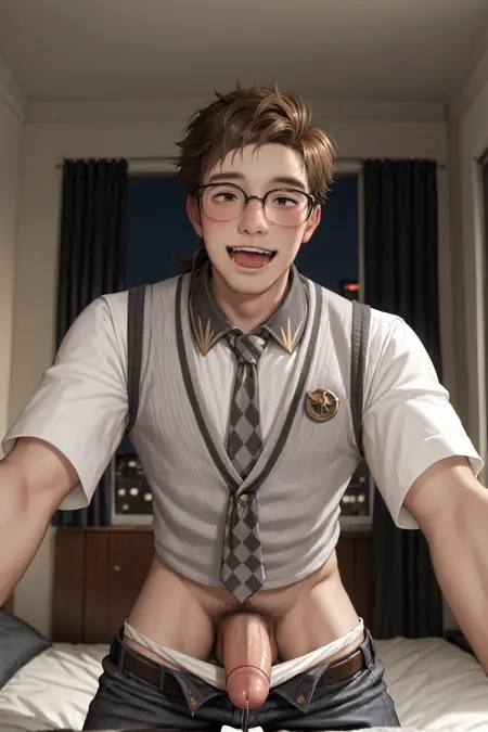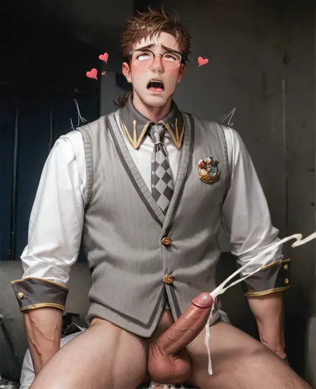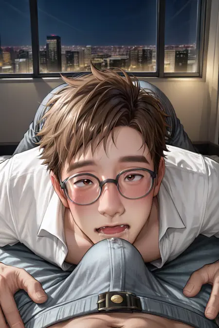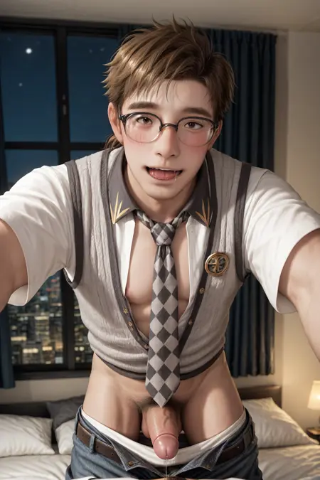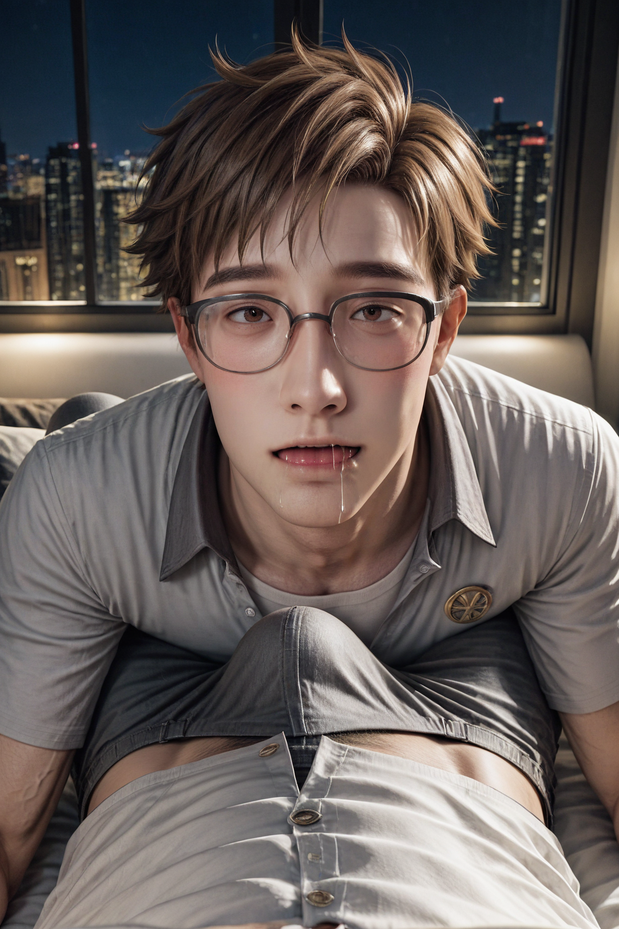眼镜,棕色头发,衬衫,领带,棕色眼睛,背心,有领衬衫,马尾辫,刘海,