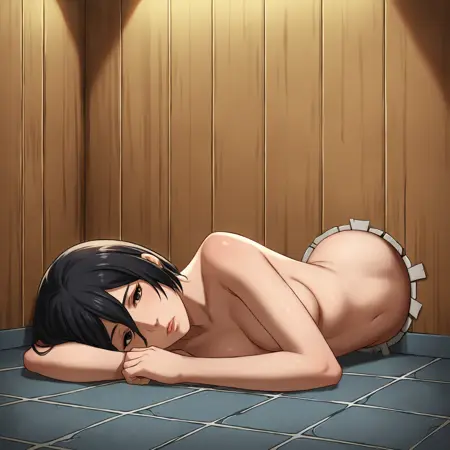 2.) score 9, score 8 up, score 7 up, source anime, glory hole, hole in wall, (((1girl, through wall, hole in wall, stuck, against wall, )), (bdsm, (suspension), restrained, shackles, bound, chain, stationary restraints)), scared, shaded face, constricted pupils, sweat, nervous sweating, stomach, bottomless, pussy, vaginal, hetero, orange hair, brown eyes, white tank top, wet clothes, high side ponytail, long hair, collarbone, sweat, hanging, cum overflow, cum in pussy, sleeveless, looking at viewer, good anatomy, penis, sex from behind, highres, absurdres, masterpiece, best quality, ultra-detailed, illustration,colorful, masterpiece, best quality, ray tracing, 8k, extremely detailed, soft lighting, tracing, soft shadows, extremely realistic, extremely detailed, <lora:StS-SDXL-Female-Side-Glory-Hole-Ite8-Both:1>
