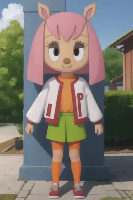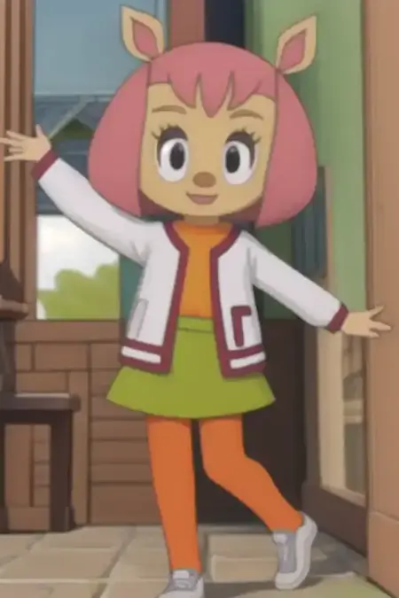 1fox girl white jacket orange shirt green skirt Orange pants blue shoes