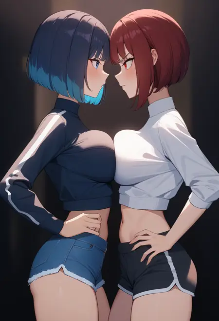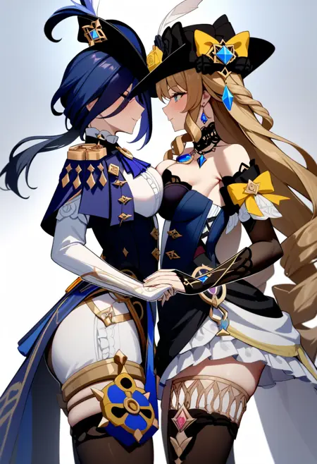 example:breast_press,2girls,ganyu_\(genshin_impact\),keqing_\(genshin_impact\),eye_contact, face-to-face