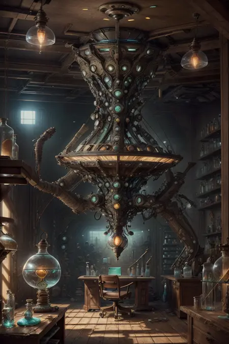 안녕하세요, 저는 J_입니다. 이번에 실험실 및 과학 판타지 장면의 개념 디자인에 적합한 뛰어난 실행성의 장면 LORA를 준비했습니다.