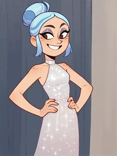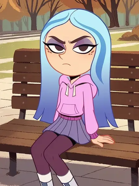 Andrea Davenport, blue hair, brown eyes, streaked hair, eyeshadow,