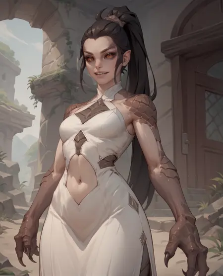 페마만, 보라색/빨간색 또는 갈색 눈, 수직 동공, 검은색 머리카락, - 비늘, (피부)