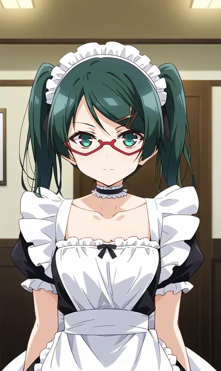 长发,发饰,双马尾,锁骨,项圈,女仆,enmaided