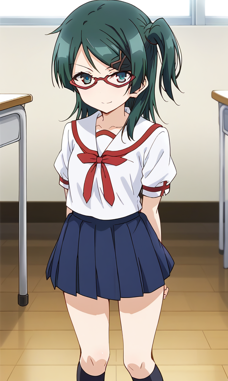 Suzuka_Kurihara, 眼镜, 发夹, 半框眼镜, 红框眼镜