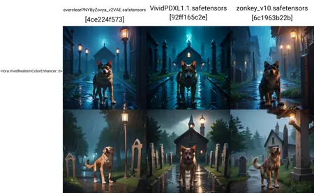 顺便一提,如果你将它与我的检查点 VividPDXL 一起使用,建议使用 v1.1 版本;而“Real”版本则无需特别依赖它,因为在合并时已经应用了类似效果。
