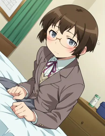 manami tamura, 短髪, 茶色の髪, 灰色の目, 眼鏡,