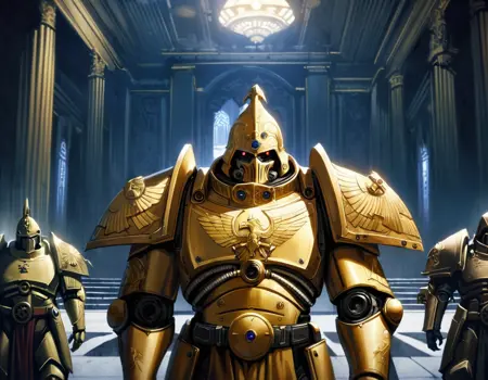 该 LoRA 专为皇帝之子——圣卫军(Adeptus Custodes)设计。