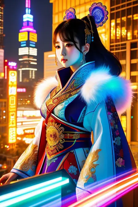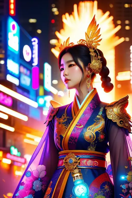 Fantasy clothes with a blend of futuristic, modern, and korea culture