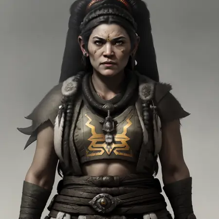 "photograph of (((female))) tk-char style warrior, highly detailed, award winning image, 16k"