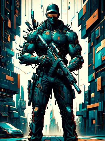 this time I have another cyberpunk art LoRA for you. I tried to combine the hightech, scifi visuals of cyberpunk with the cubism art style.