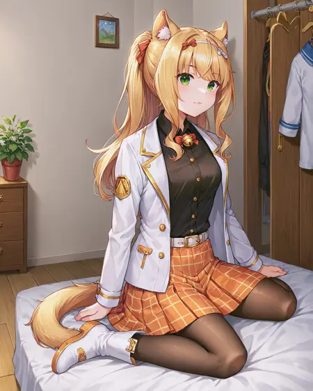 | 训练词汇 | maple, blonde hair, bangs, green eyes, cat girl, pointy cat ears, cat ears, cat tail, 已复制! bow, orange bow, ribbon, bell, neck bell, hair ribbon, maid headdress, maid, frills, clothing cutout, cleavage cutout, short sleeves, puffy sleeves, wrist cuffs, puffy short sleeves, apron, waist apron, frilled apron, bare legs, shoes, high heels, orange footwear, 已复制! bow, orange bow, ribbon, bell, neck bell, hair ribbon, hair ornament, maid headdress, light orange dress, frills, cleavage, light orange sleeves, long sleeves, sleeves past wrists, puffy sleeves, wrist cuffs, puffy short sleeves, apron, waist apron, frilled apron, bare legs, shoes, high heels, light orange footwear, 已复制! long hair, bow, bell, hairband, school uniform, shirt, white shirt, frills, center frills, vest, short sleeves, wristband, skirt, brown skirt, orange skirt, plaid, plaid skirt, pleated skirt, socks, brown legwear, kneehighs, shoes, loafers, brown footwear, 已复制! long hair, ponytail, sidelocks, hair ornament, bow, bell, shirt, black shirt, jacket, white jacket, long sleeves, belt, white belt, skirt, orange skirt, plaid, pantyhose, black pantyhose, boots, white footwear, 已复制! long hair, bow, collarbone, sleeveless, cutout, sleepwear, black sleepwear, white top, buttons, dark purple nightgown, frills, 已复制! |