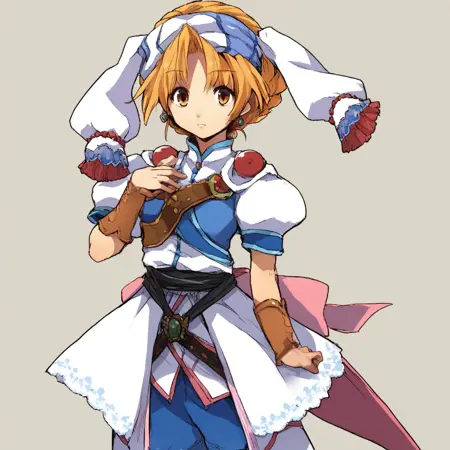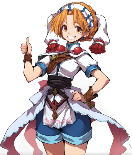 是的,这是《格兰迪亚》系列的又一个LoRA,而且这似乎也是我为“艾莲娜”制作的第二个角色LoRA……算了,数据集较小使得训练有些困难,尤其是艾莲娜的服装细节繁多。官方服装在她身体两侧配有奇怪的挂坠饰物,尽管我尝试在训练中包含这些细节,但似乎并未成功。
