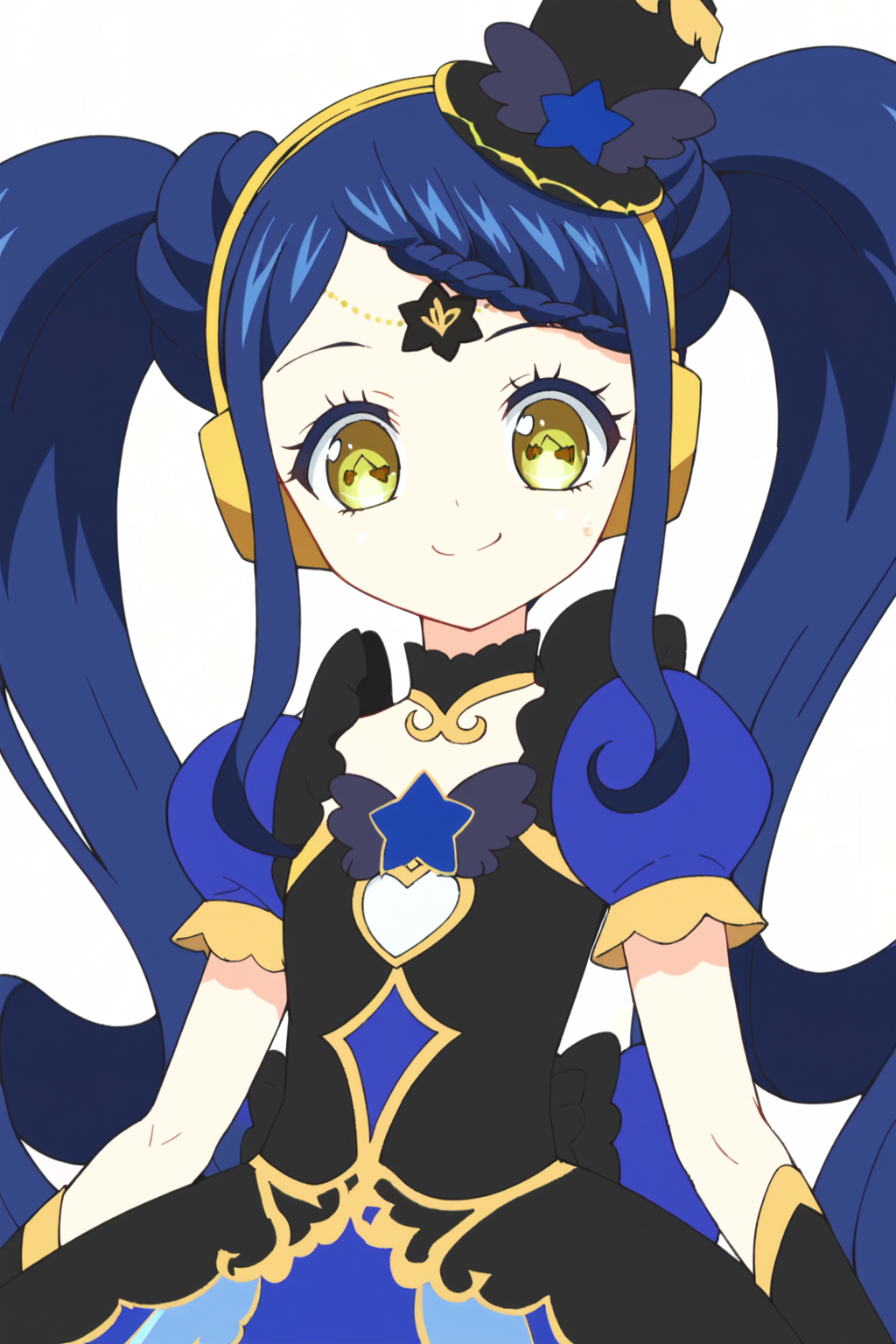 galala s.leep, long hair, blue hair, twintails, yellow eyes, hat, braid, headphones, facial mark, star \(symbol\), forehead mark, very long hair, choker