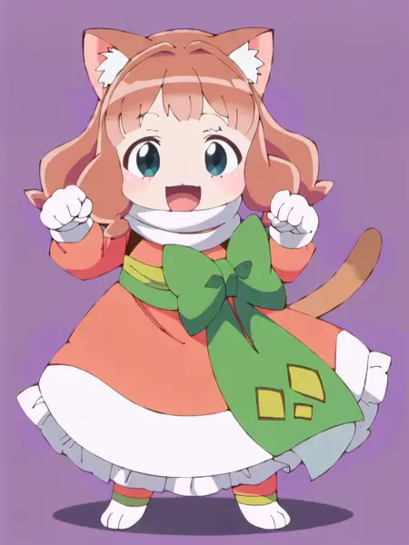 Base prompt: nefertima-nema, chibi, shortstack, hair bow, dress