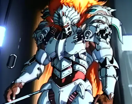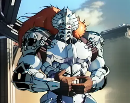 これはOVA映画『サイバネティックス・ガーディアン』の主要キャラクターの一人をもとにしています。具体的には、ロボットに悪と善の二つの形態があり、ここでは映画の終盤近くに登場する善のバージョンです。登場人物たちによって彼に名前は与えられていませんが、映画のタイトルが『Cybernetics Guardian』であり、一般向けに販売された多くの映画カバーに「Cyguard」と表記されていることから、私は彼の名前を「Cyguard」と推測しています。タイトルからも、Cyguardが最終的に登場するヒーローの名前であり、カバーにも描かれていると読めます。