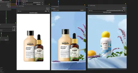 当ワークフローは、プロダクト画像とリファレンス画像の2つの入力を必要とします。プロダクト画像は中心となる要素であり、リファレンス画像は背景のインスピレーションの源となります。高度なアルゴリズムと洗練された技術を用いて、このワークフローは2つの画像をシームレスに統合し、視覚的に印象的でありながら、ブランドの美的感覚に忠実な新しい画像を生成します。