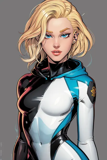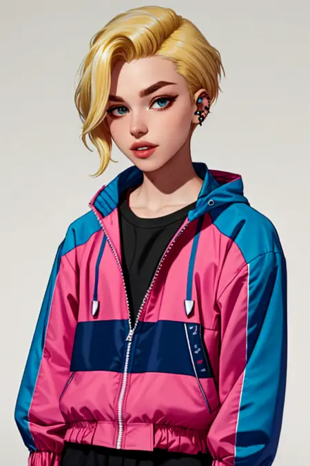 blonde hair, undercut, eyebrow piercing, parted lips, asymmetrical hair
