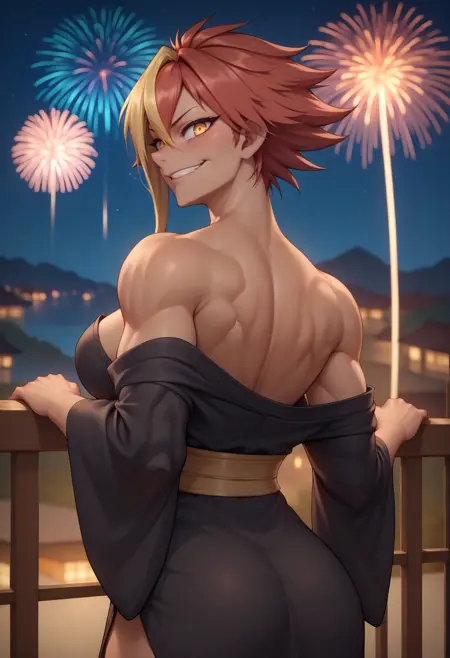 トリガー: "MarleB, dark skin, yellow eyes, short hair, multicolored hair, asymmetrical bangs" は必ず必要です。より正確な体型を求める場合、「toned」または「large breasts」を追加してください。