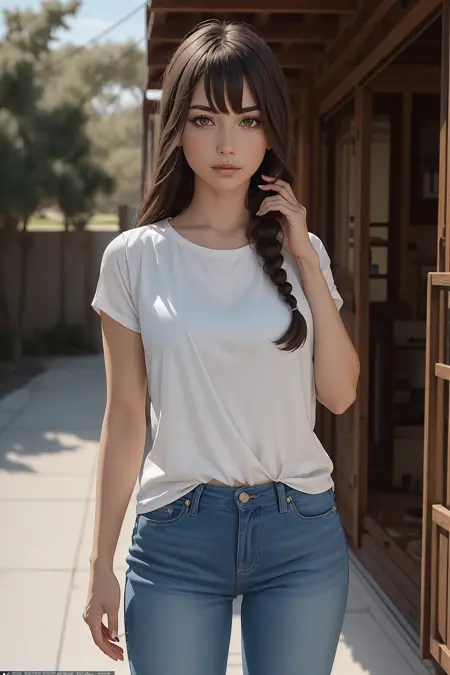 Pos: (유럽계), 해변, 바다, (손 잘 그린), (손가락 잘 그린), (긴 땋은 머리), (앞머리), 프레임 내에, 초고화질, 8K, 걸작, 아름다운 디테일 있는 얼굴, (복합 조명), (아름다운 디테일 있는 눈), (주변 조명), 현실적인 그림자, (전신:1), (1소녀), (카우보이 셔터), 무늬 셔츠, 바지, 관객을 바라보는 자세, 완벽한 몸매, 몸 잘 그린:1, 다리 잘 그린:1, 팔 잘 그린:1, 다이나믹 포즈