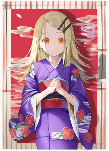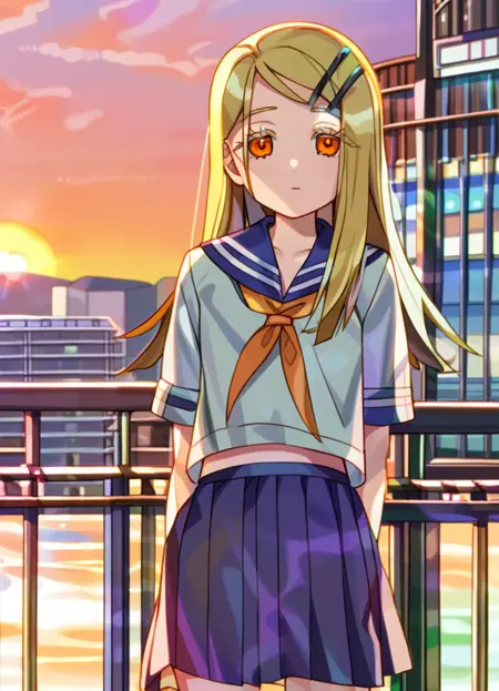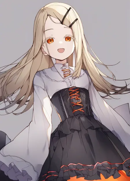 1girl, solo, blonde hair, long hair, orange eyes, hairclip,