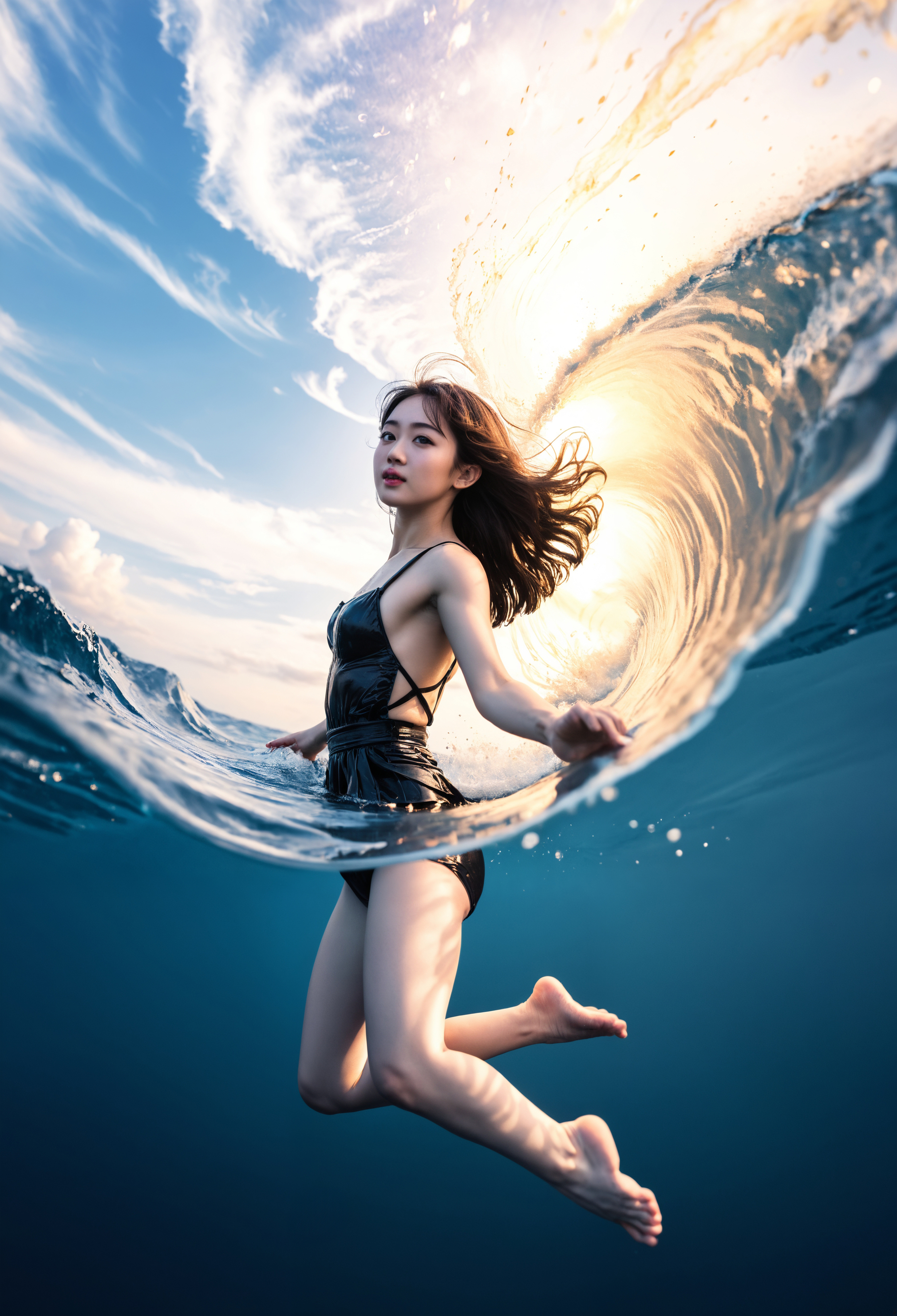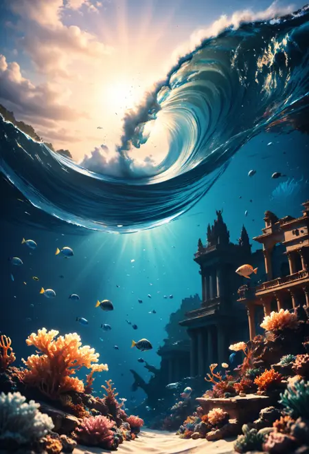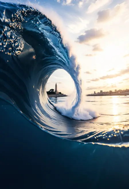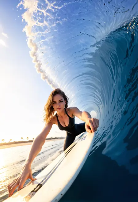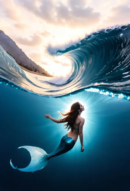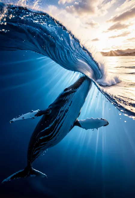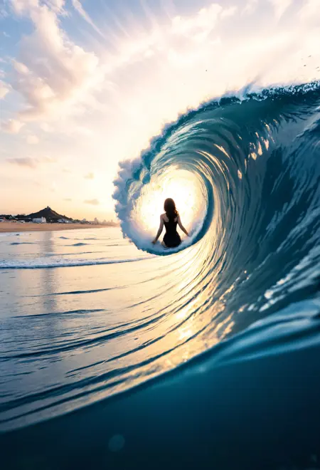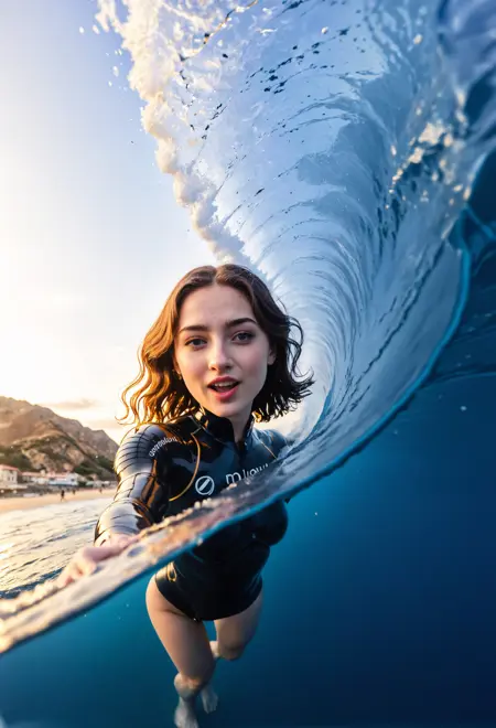 捕捉水下与水上场景的分帧图像,对于基础模型而言极具挑战性。然而,借助此 LoRA,这一过程变得极为简单。更进一步的是,在 SDXL 中几乎难以实现的、在破浪中生成分帧图像的效果,此 LoRA 正是基于大量此类样本进行训练的。