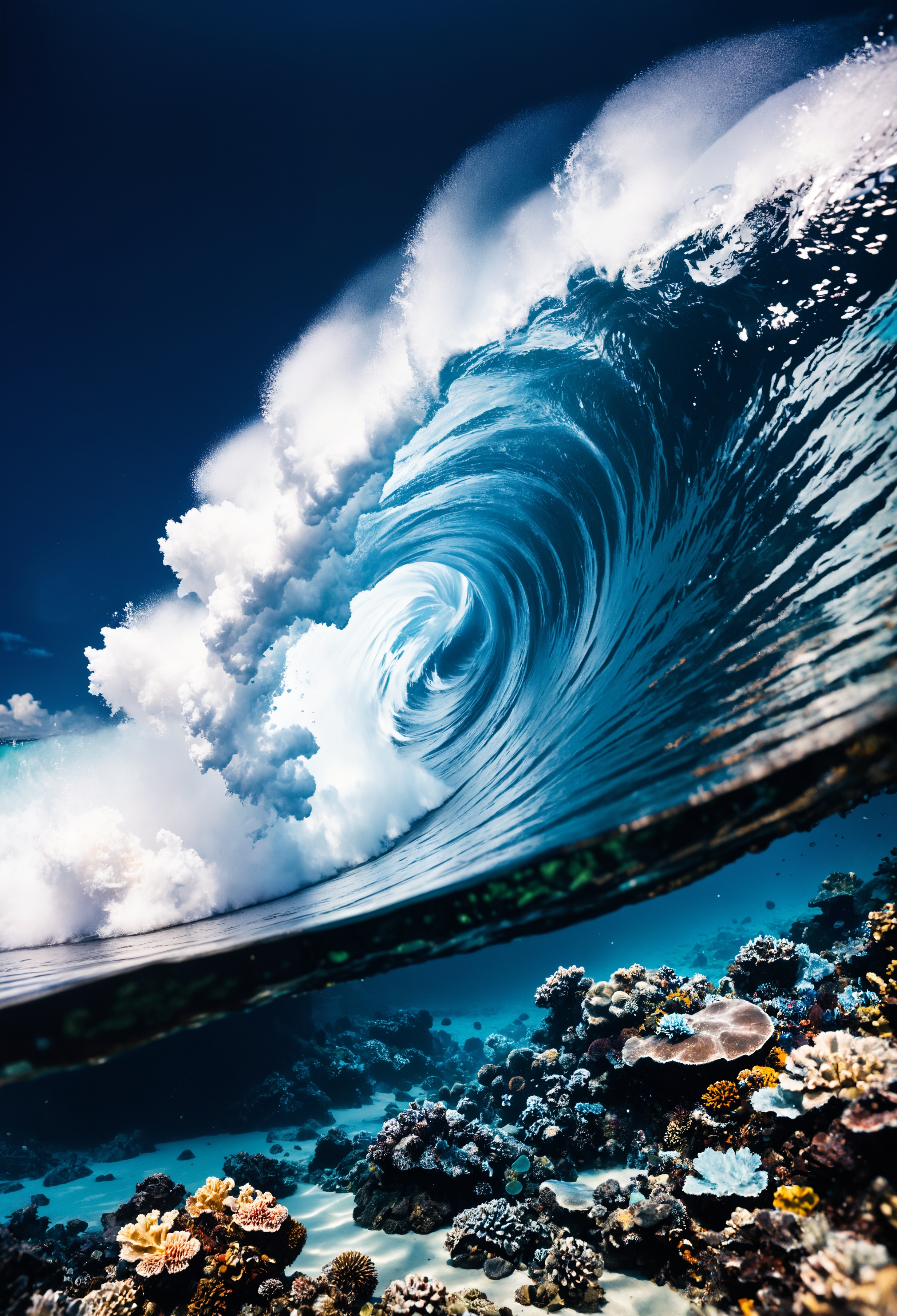 zavy-ndrwtr, water edge, split frame, underwater, crashing wave