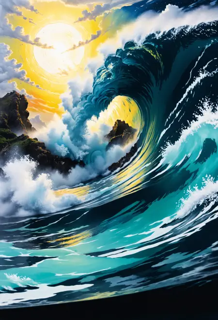 zavy-ndrwtr 是必需的触发词。可使用其他触发词进一步引导模型,以确定是否需要破浪效果。
