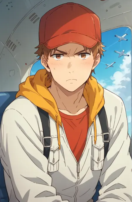 いくつかテストしたところ、強度0.8〜が最も効果的でした。ただし、サラチのフーディーがジャンプスーツと重なってしまうので、プロンプトにこのように記述することで解決できます:(白色ジャンプスーツ、黄色フーディー)