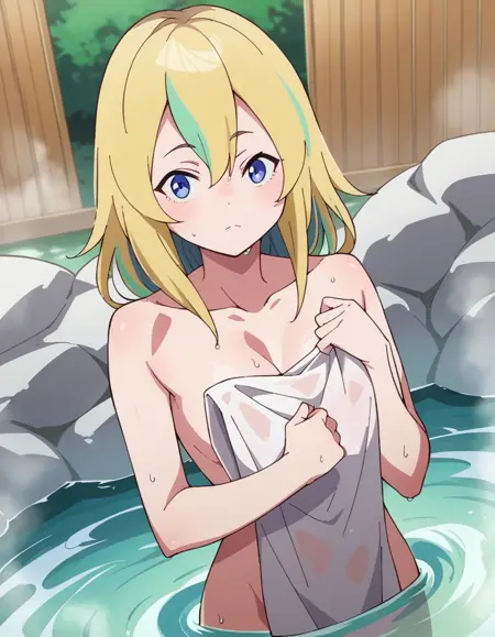 kano yamanouchi, blue eyes, blonde hair, hair between eyes, multicolored hair, streaked hair,
