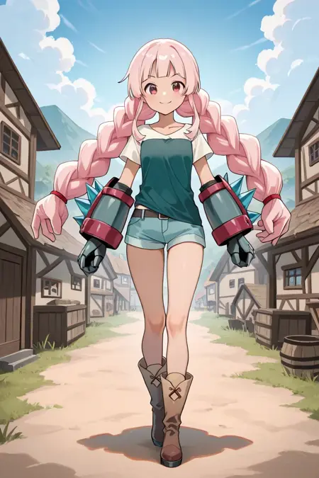 Her hair will look better using my head with legs lora at a 0,8 strength using the "hair arms" trigger.