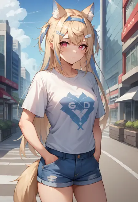 FuwawaAbyssgard, long hair, two side up, streaked hair, hairband, hairclip, tail
