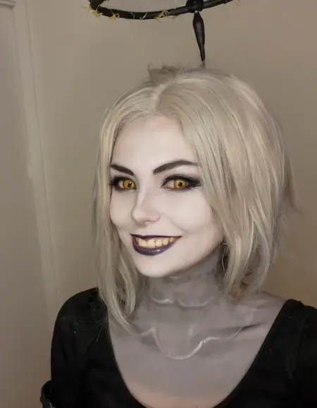 ルートは、地獄の年次仮装舞踏会のために、有名な暴君の驚異的なコスチュームを数週間かけて作り上げた。彼女が舞踏会場に入ると、観客は彼女の衣装の鮮明さと細部に息を飲んだ。彼女の存在はその夜の中心となり、カメラの閃光は一つ一つ彼女の不気味な輝きを捉えた。彼女のコスプレは注目を集めただけでなく、賛美と恐怖のささやきを呼び起こした。夜が明ける頃には、ルートの劇的才能が地獄のエリートたちの間で話題になっていた。