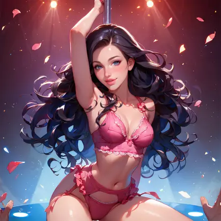 我创建了这个模型,用于将你最喜欢的角色变成脱衣舞娘,或总体上生成一些性感的脱衣舞娘。该模型使用超过500张图片,在Pony Diffusion V6 XL上训练了10个周期,共2910步。