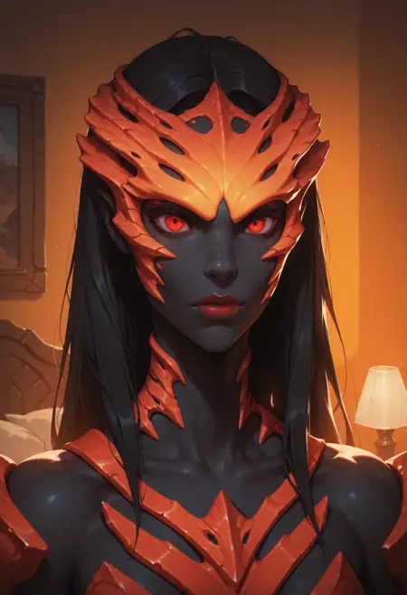 触发词: parshendi,黑色皮肤带红色大理石纹,彩色皮肤,外骨骼