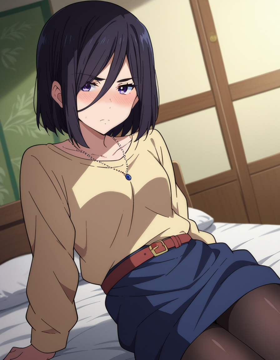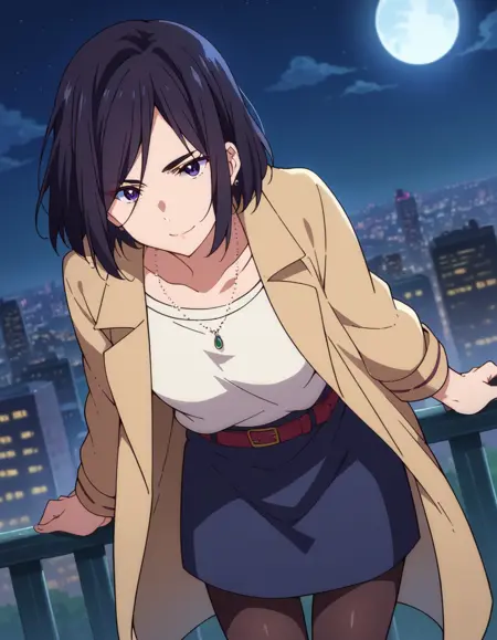 スカート、シャツ、ジュエリー、オープンな服、ベルト、ネックレス、コート、黒いパンツタイツ、オープンなコート、