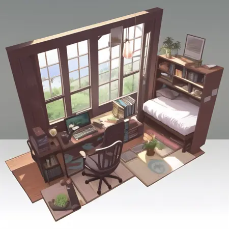 该模型为实验性模型,旨在展示内部的斜轴测鸟瞰图。在低权重时,它会调整视角。