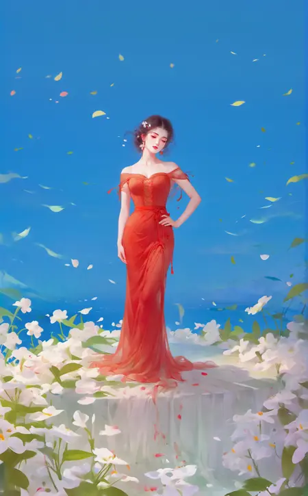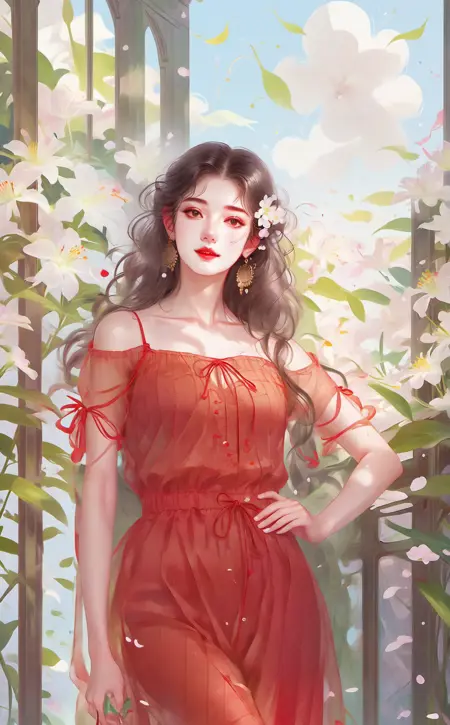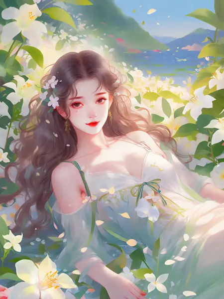 낮빛의 품에 안겨 자연의 시는 노래처럼 펼쳐진다. 섬세한 꽃잎과 잎사귀들이 바람에 부드럽게 흔들리며 꿈을 떠올리게 한다. 어린 소녀는 초월적인 반투명 쉬폰으로 몸을 감싸며 빛과 그림자의 교향곡 속에 있다. 풀잎들이 조용히 속삭이고, 햇빛이 섬세한 천을 통해 스며들어 조용하고 아름다운 빛과 그림자의 세계를 연출한다. 이 매혹적인 순간에 자연의 시는 부드럽게 노래하며 영혼을 사로잡는 평온한 아름다움의 그림을 그려낸다.
