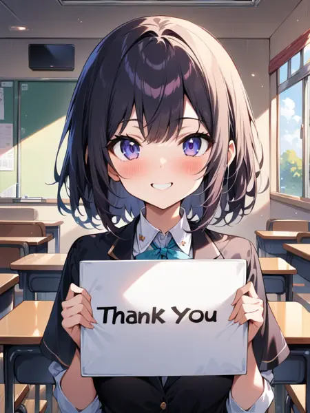 举起一个写着“谢谢”等字样的标牌。如果需要,也可以添加其他文字。