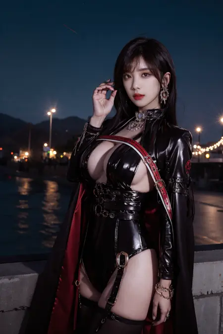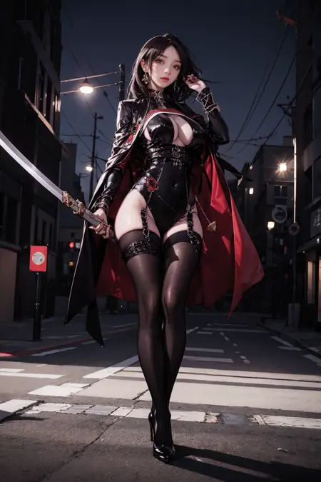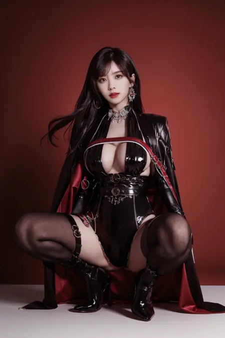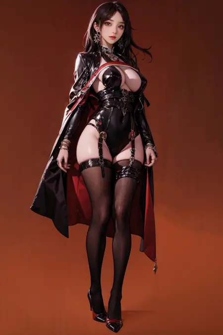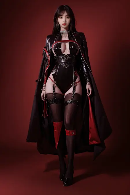 belt,leotard,bondage outfit,jewelry,thighhighs,cape